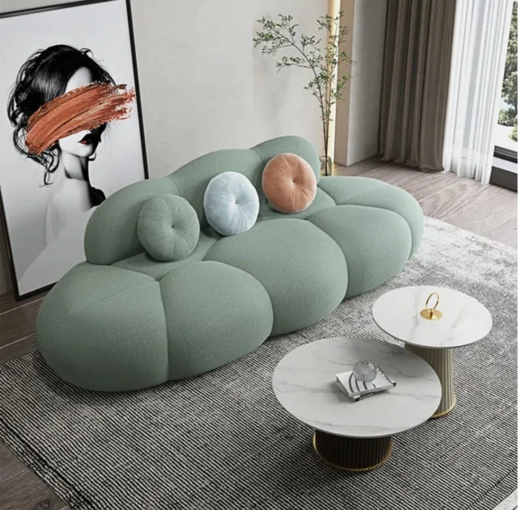 Sevimli ve modern tasarımıyla dikkat çeken bu 2’li koltuk, kısa yaslanma yeri ve parça parça görünen yapısıyla özel bir tarz sunuyor. Sanki küçük berjerlerin birleşmesiyle oluşmuş hissi veren tasarım, ortada kısa bir yaslanma alanına sahip olmasıyla farklı bir hava katıyor.
