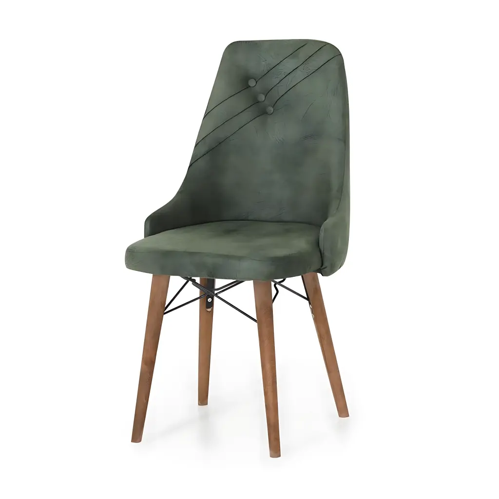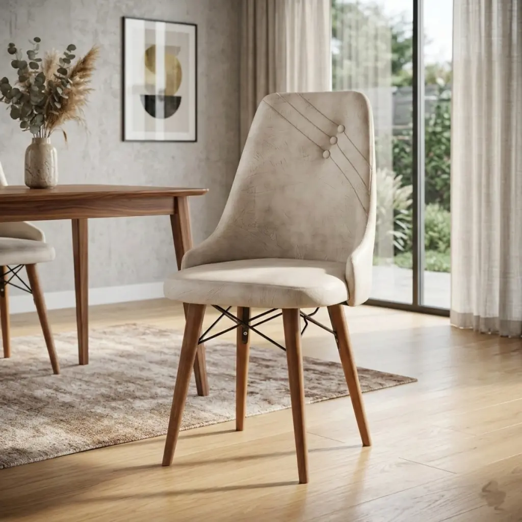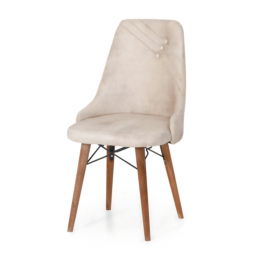 Sade çizgileri ve zarif desen detaylarıyla dikkat çeken bu sandalye, yaşam alanınıza doğal bir şıklık katıyor. Ahşap ayakları sayesinde sıcak ve estetik bir görünüm sunarken, oturum kısmındaki desenli tasarım modern bir dokunuş ekliyor. Hem rahat oturum sağlayan yapısı hem de dekoratif görünümüyle yemek odaları ve salonlar için ideal bir seçimdir.