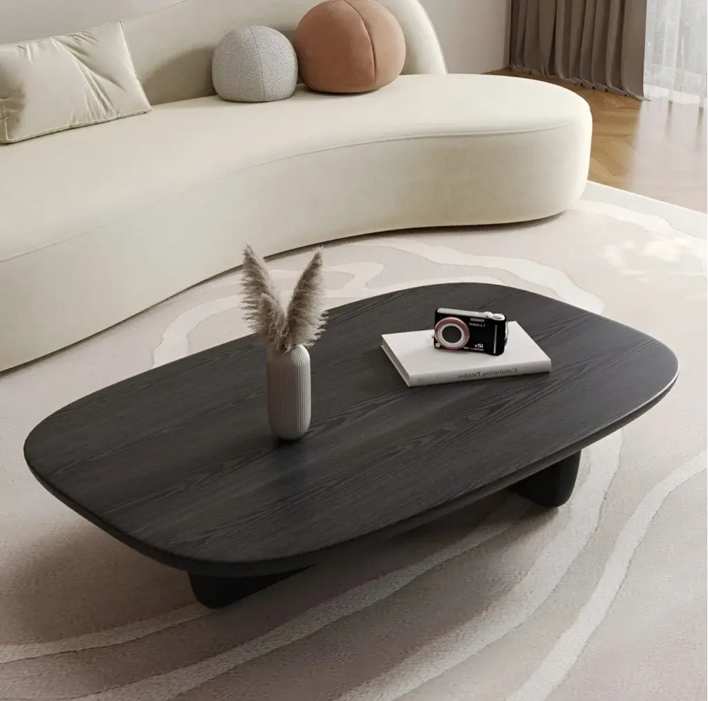 Sıradan köşeli sehpaların aksine bu ürün, salonunuza yumuşaklık ve sofistike bir hava katar. Yere sağlam basan küt ayak yapısı ve pürüzsüz oval formu; tasarıma sadece görsel bir şıklık değil, aynı zamanda heykelsi bir karakter kazandırır. Keskin hatlardan uzak yapısı sayesinde hem güvenli bir kullanım sunar hem de mekanın enerjisini dengeler. Doğal ahşap dokusunun derinliğini siyahın asaletiyle buluşturan bu parça, modern ve minimalist evlerin vazgeçilmezi olacak.