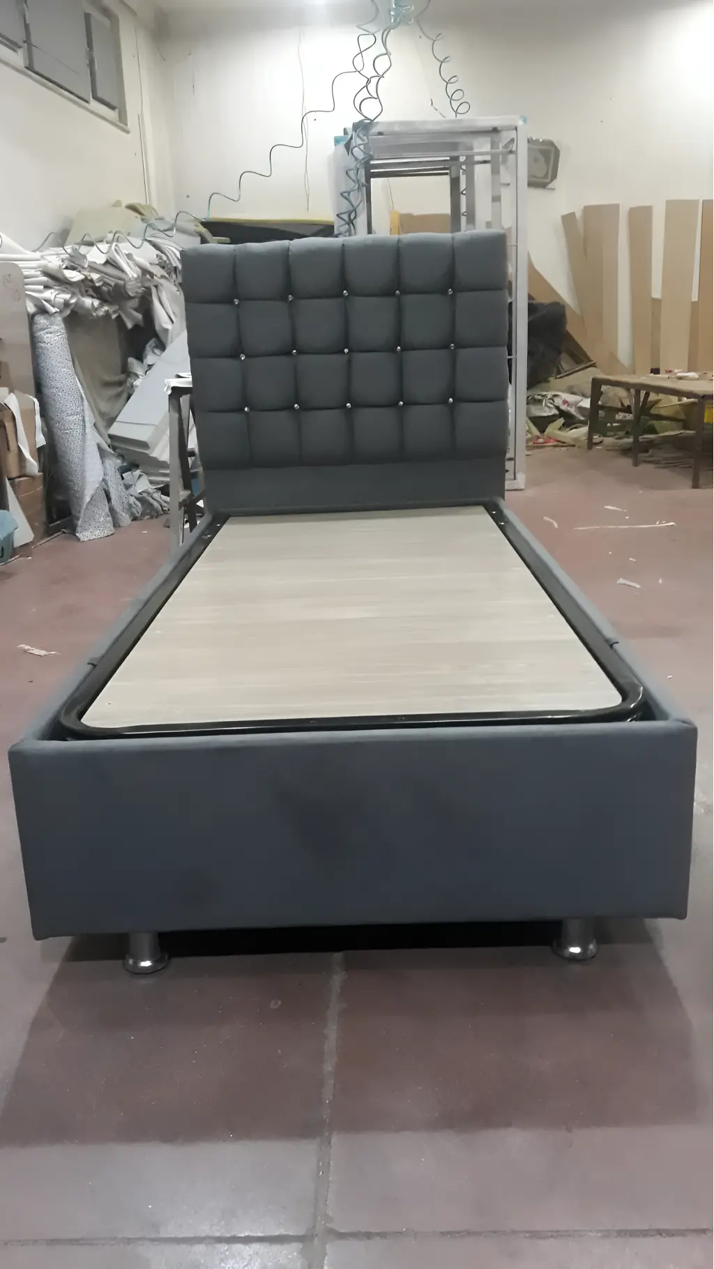 Küçük ve orta boy yatak odaları için ideal olan bu tek kişilik baza ve başlık takımı, hem şık hem de kullanışlı bir çözümdür. Başlık, yumuşak dokulu kumaşla kaplanmış olup sade ama zarif kapitone dikişlerle tasarlanmıştır. Rahat bir sırt yaslama alanı sağlayarak konfor sunar.