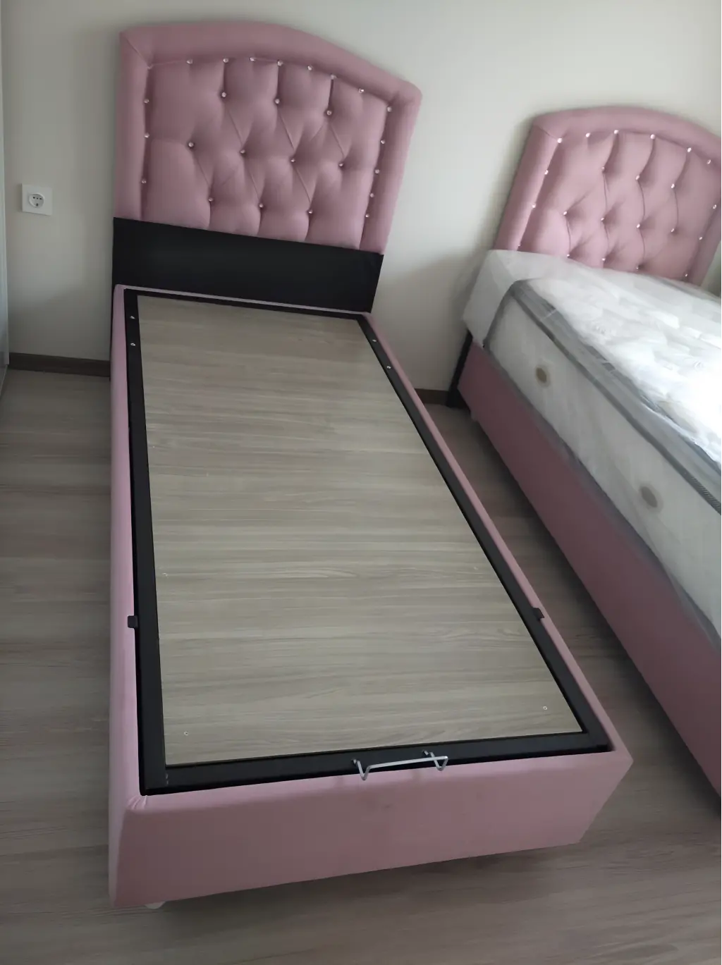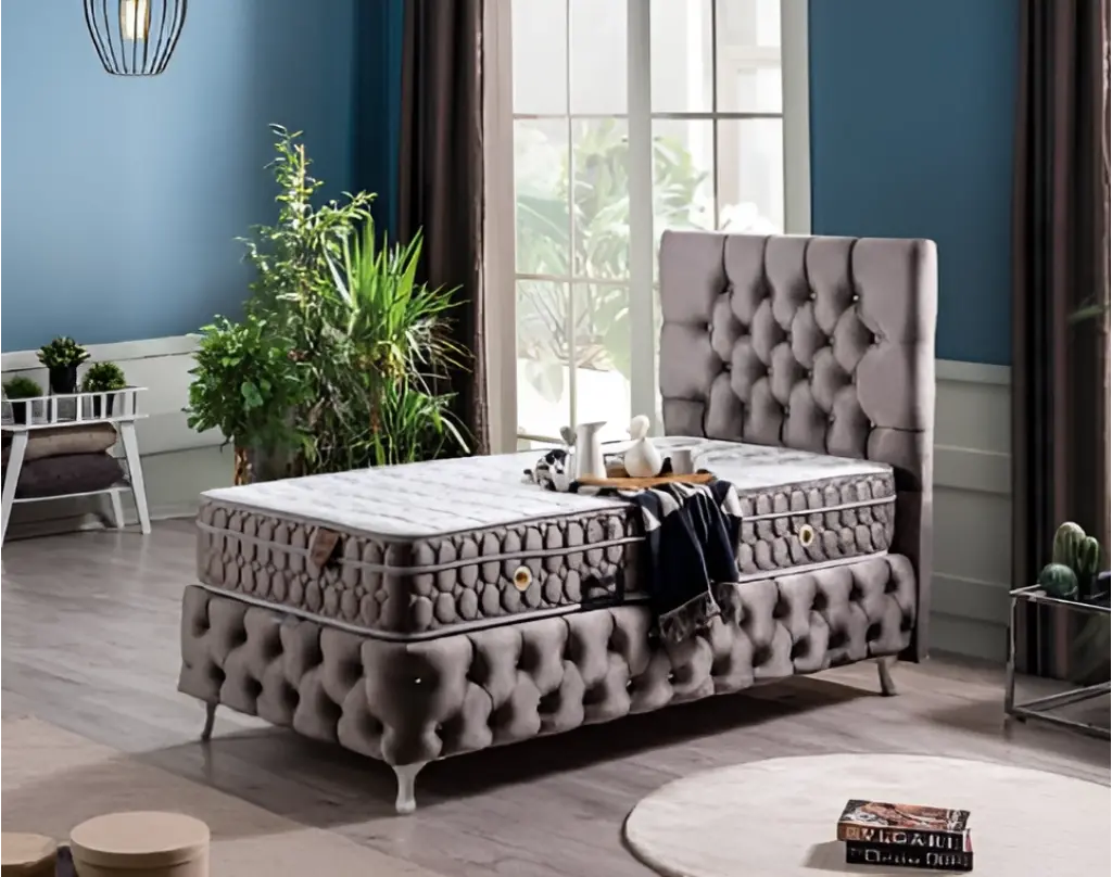 Bu tek kişilik baza ve başlık takımı, küçük ve orta boy yatak odaları için ideal bir çözümdür. Başlık kısmı, yumuşak dokulu kumaşla kaplanmış olup, sade ama şık kapitone dikişlerle tasarlanmıştır. Hem görsel olarak hoş bir duruş sergiler hem de sırtınızı yaslamak için konforlu bir destek sağlar.