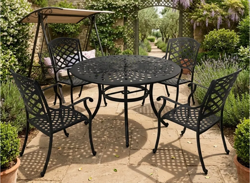 Şık ve farklı tasarımıyla öne çıkan bu bahçe takımı, 1 adet yuvarlak masa ve 4 adet ergonomik sandalye içerir. Hafif ve kompakt yapısı sayesinde dar alanlarda bile rahatça kullanılabilir.