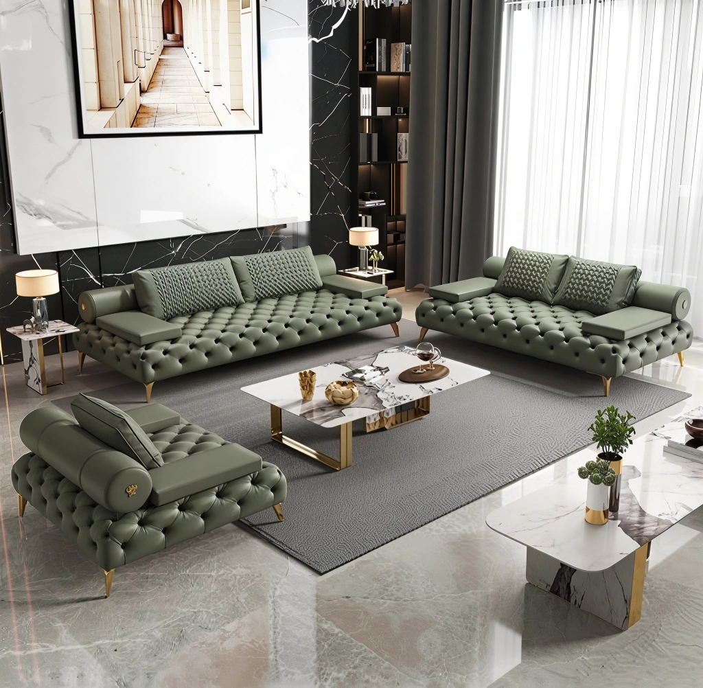 Şıklık ve konforu bir arada sunan lüks koltuk takımı, 3+2+1 oturum düzeniyle yaşam alanlarınızı zenginleştiriyor. Hem modern hem de klasik dekorasyon stillerine uyum sağlayan bu takım, yüksek kaliteli kumaş veya PU deri seçenekleriyle kişisel zevkinize göre şekillendirilebilir. Farklı renk alternatifleriyle evinizin ambiyansına en uygun dokunuşu yapmanıza imkan tanır.