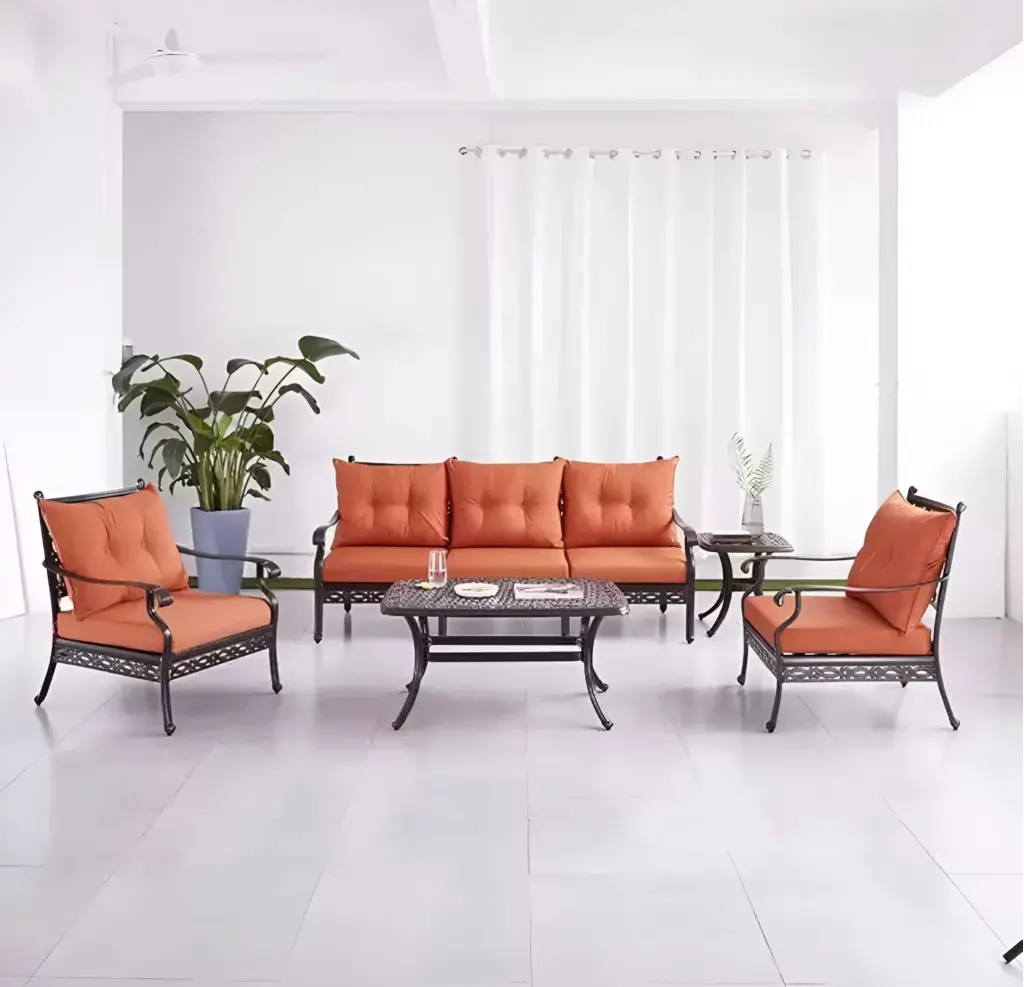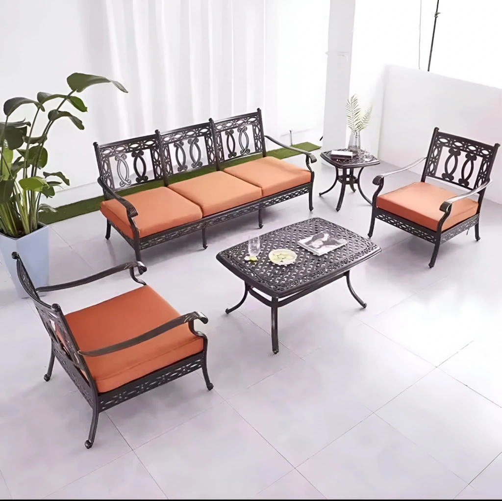 Geniş ve rahat oturum sunan bu bahçe takımı; 1 adet üçlü koltuk, 2 adet tekli koltuk ve 1 adet sehpadan oluşur. Modern ve uyumlu görünümüyle balkon, teras veya bahçenizde keyifli bir oturma alanı oluşturur. Hem günlük kullanım hem de misafirler için ideal bir yerleşim sağlar.