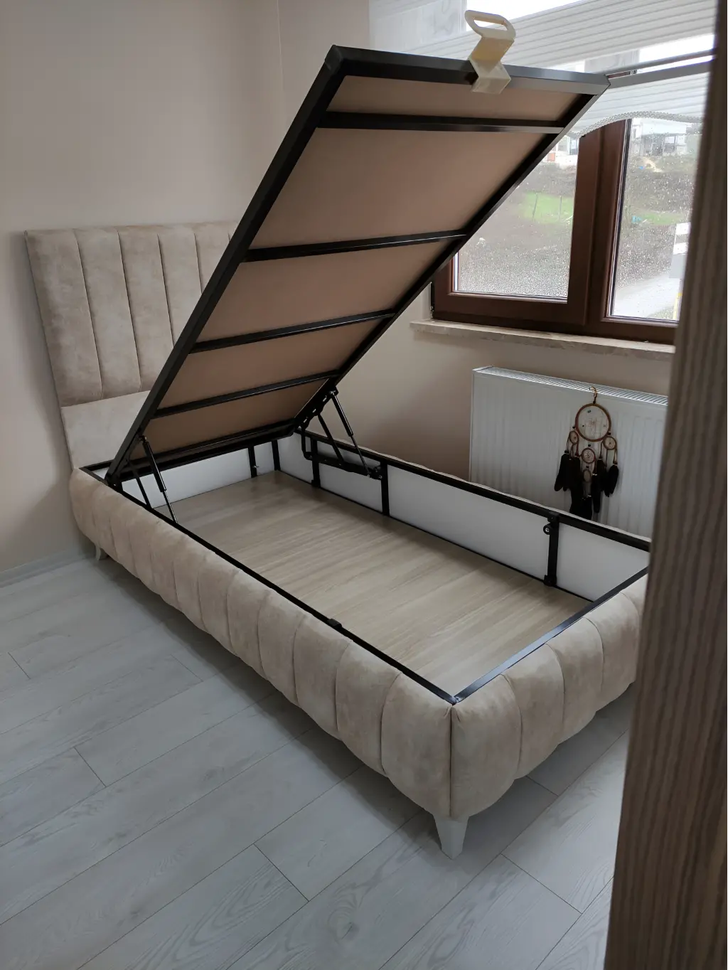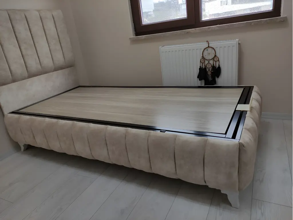 Baza ise dayanıklı malzemelerden üretilmiş olup, alt kısmında geniş ve pratik bir saklama alanı sunar. Yorgan, yastık veya diğer eşyalarınızı düzenli bir şekilde muhafaza etmek isteyenler için çok kullanışlıdır. Ayrıca baza kapakları kolay açılır ve kapanır şekilde tasarlanmıştır.