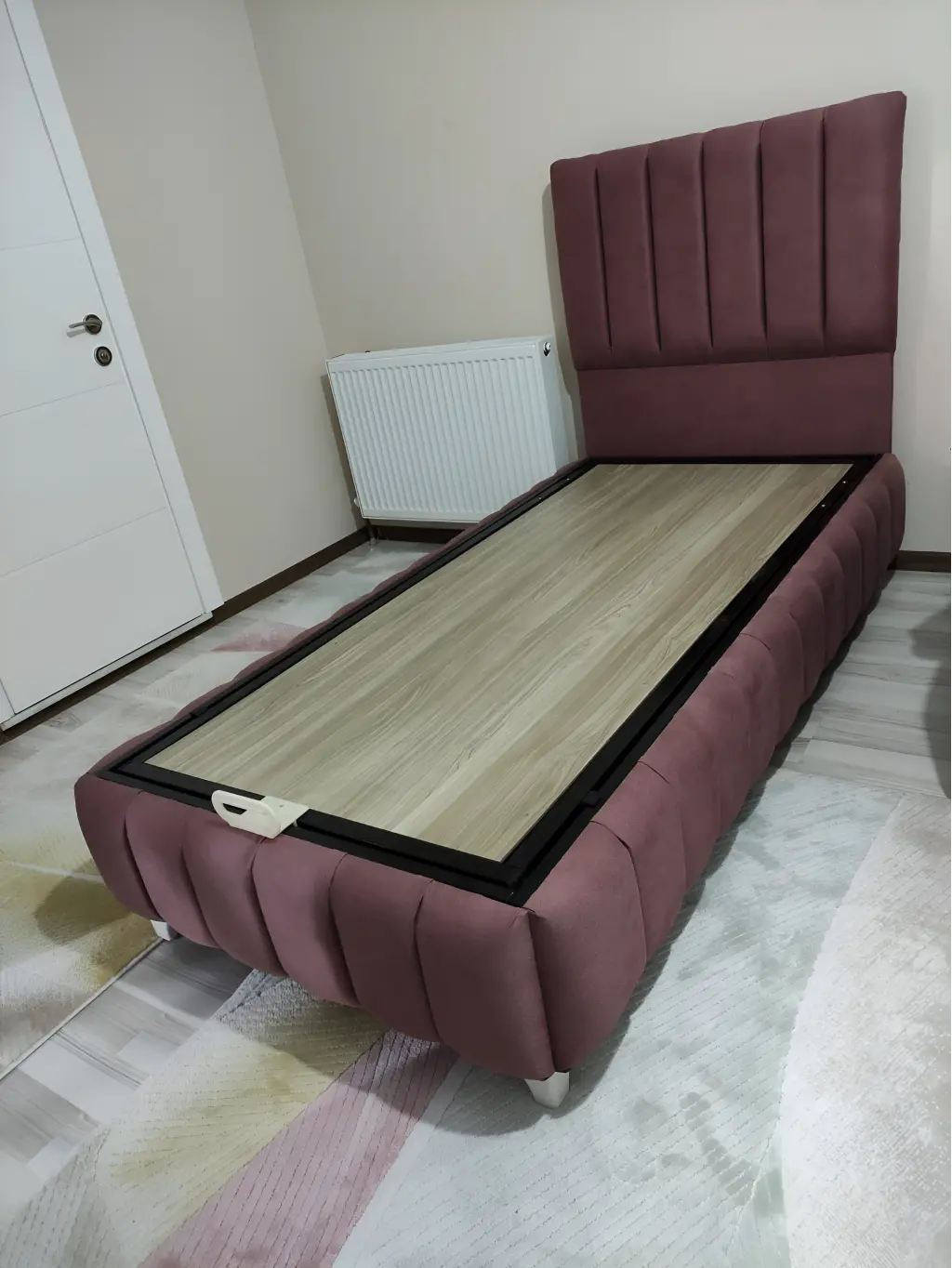 Bu tek kişilik baza ve başlık takımı, küçük ve orta boy yatak odaları için ideal bir çözümdür. Başlık kısmı, yumuşak dokulu kumaşla kaplanmış olup, sade ama şık kapitone dikişlerle tasarlanmıştır. Hem görsel olarak hoş bir duruş sergiler hem de sırtınızı yaslamak için konforlu bir destek sağlar.