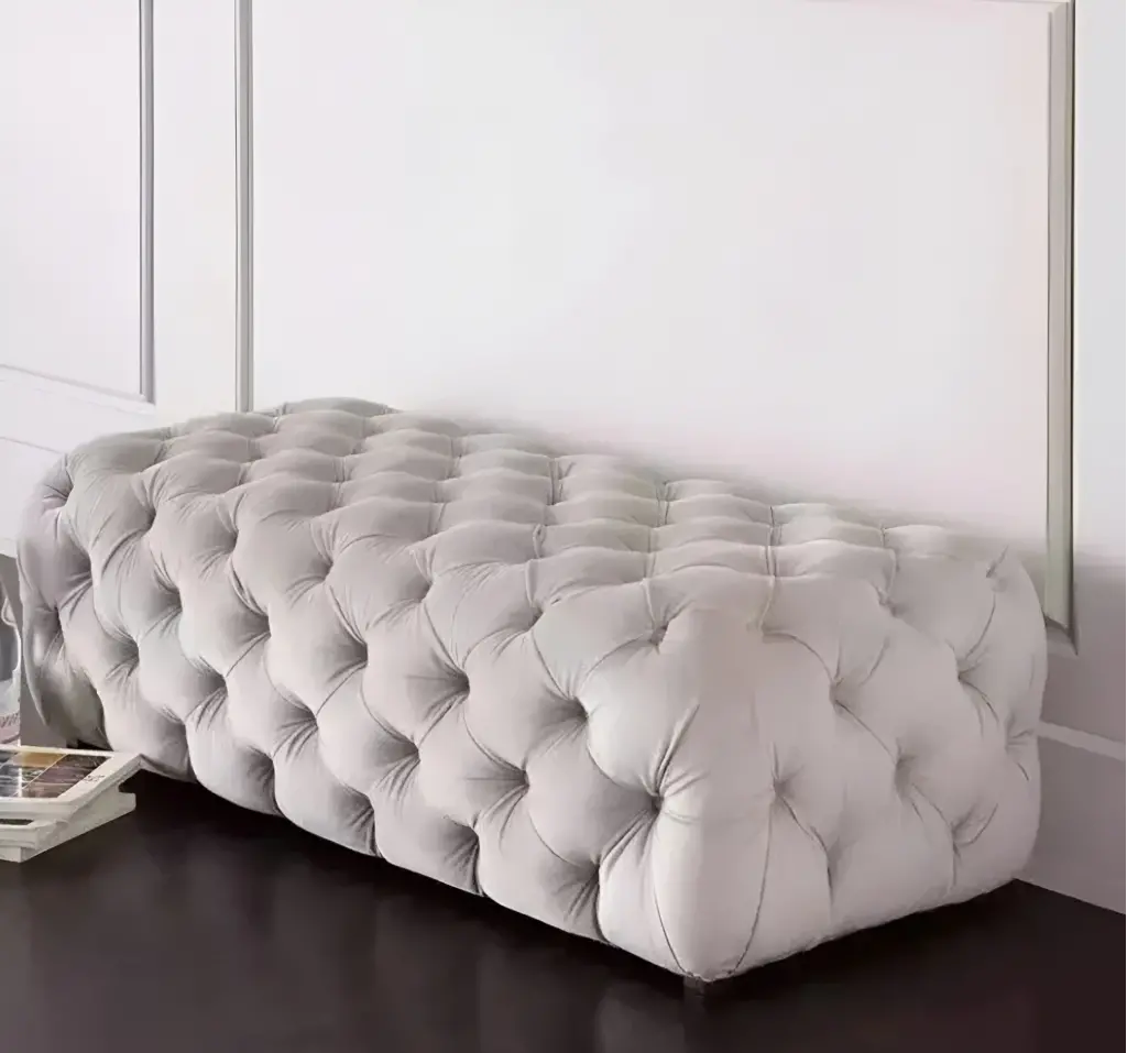 360° Tufting: Sadece üstte değil, yanlarda da kesintisiz devam eden, el işçiliği yoğun "sonsuz kapitone" örgüsü.