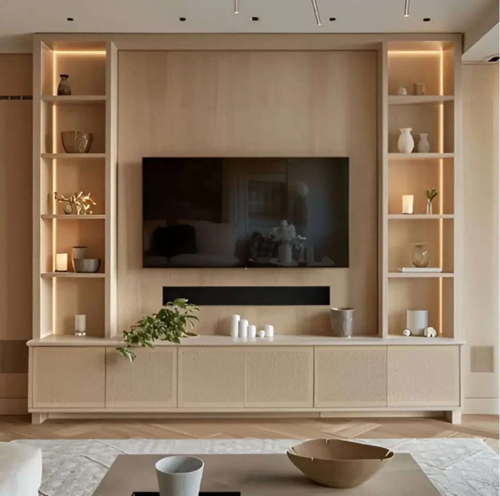 Zarif tasarımı ve fonksiyonelliğiyle öne çıkan bu TV ünitesi, yaşam alanınıza şıklık katıyor. Ortada televizyon bölümü bulunurken, etrafındaki raflar dekoratif objeler, kitaplar veya aksesuarlar için ideal bir sergileme alanı sunuyor. Açık ve cam kapaklı raf seçenekleri, hem estetik hem de pratik depolama imkânı sağlıyor.