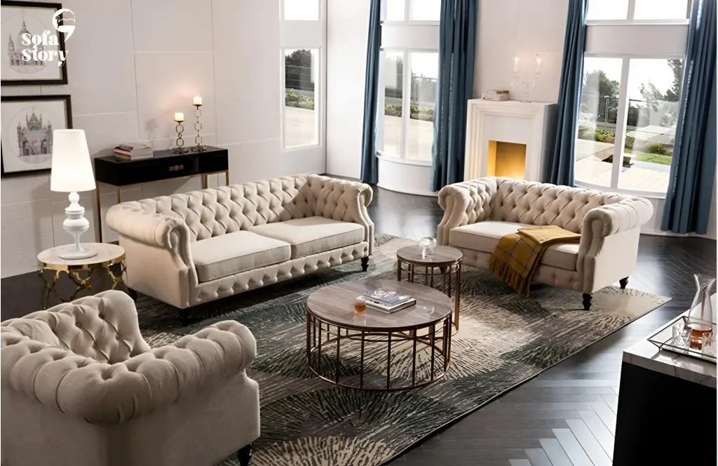 İhtişamlı tasarımı ve zarif detaylarıyla dikkat çeken bu koltuk takımı, yaşam alanınıza adeta kraliyet havası katıyor. 3’lü, 2’li ve tekli koltuktan oluşan takım; geniş oturum alanı, konforlu minderleri ve gösterişli görünümüyle hem estetik hem de konforu bir arada sunuyor. Özel dokulu kumaşı, lüks işçiliği ve asil duruşuyla ev dekorasyonunda prestijli bir tercih oluşturur.