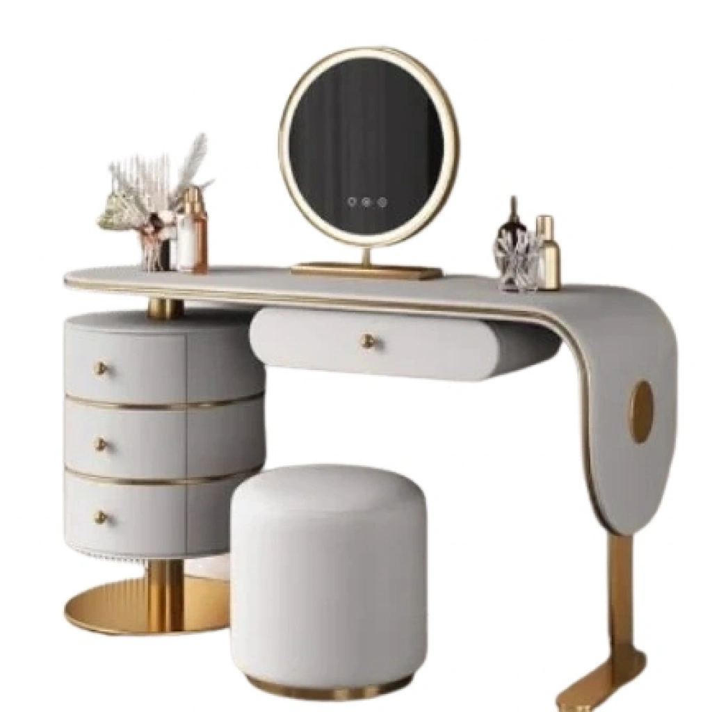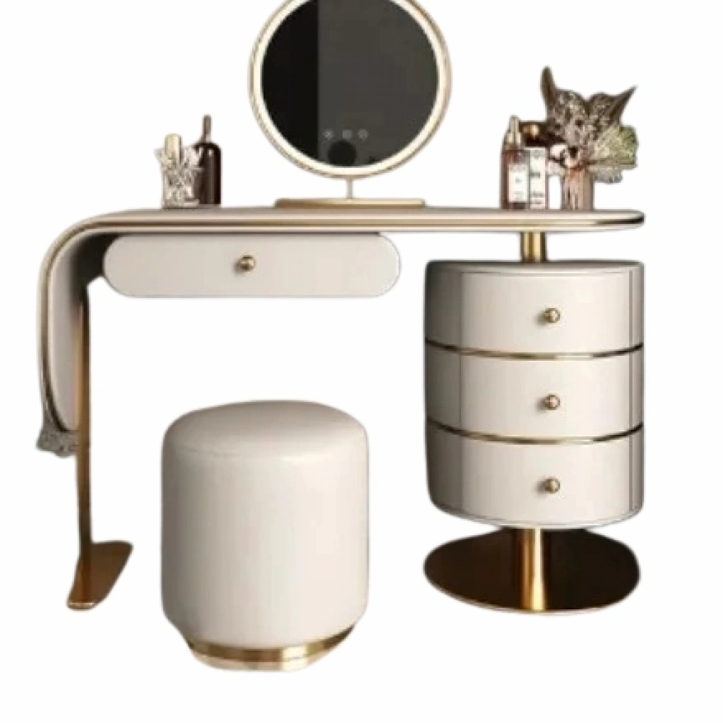 Şıklık ve fonksiyonelliği bir arada sunan lüks makyaj masası takımı, zarif tasarımıyla odanızın havasını tamamen değiştirecek. Takım içerisinde yer alan konforlu puf, hem estetik hem de kullanışlıdır, makyaj rutininizi keyfe dönüştürür.