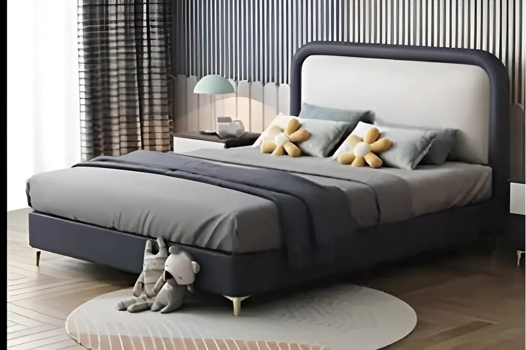 Zemin üzerinde yüksek durmasını sağlayan beyaz bombeli ayaklar, hem temizlik açısından kolaylık sunar hem de baza tasarımına zarif bir dokunuş ekler. Açık krem tonlarındaki döşemesi, farklı renklerdeki duvar, perde ve mobilyalarla kolayca uyum sağlar.