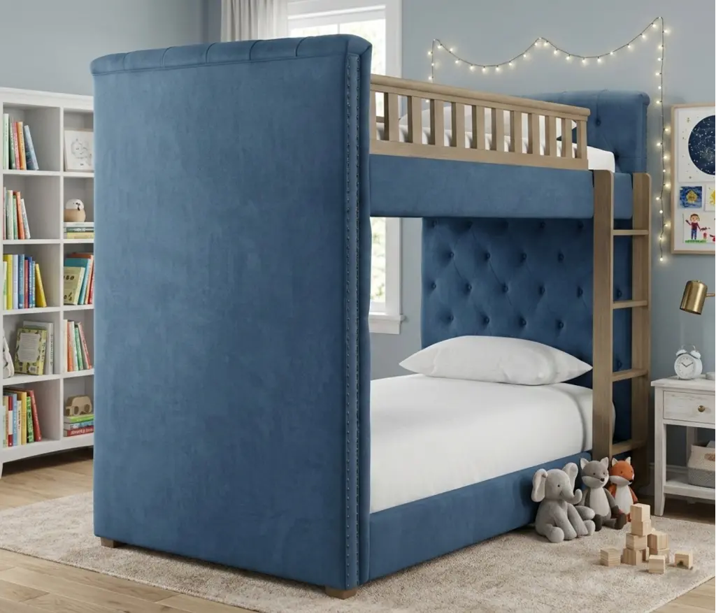 Hem şıklığı hem de fonksiyonelliği bir arada sunan bu iki katlı kumaş döşemeli ranza, modern yaşam alanları için özel olarak tasarlanmıştır. Dayanıklı yapısı ve zarif kumaş kaplamasıyla odanızda hem konfor hem de estetik sağlar.