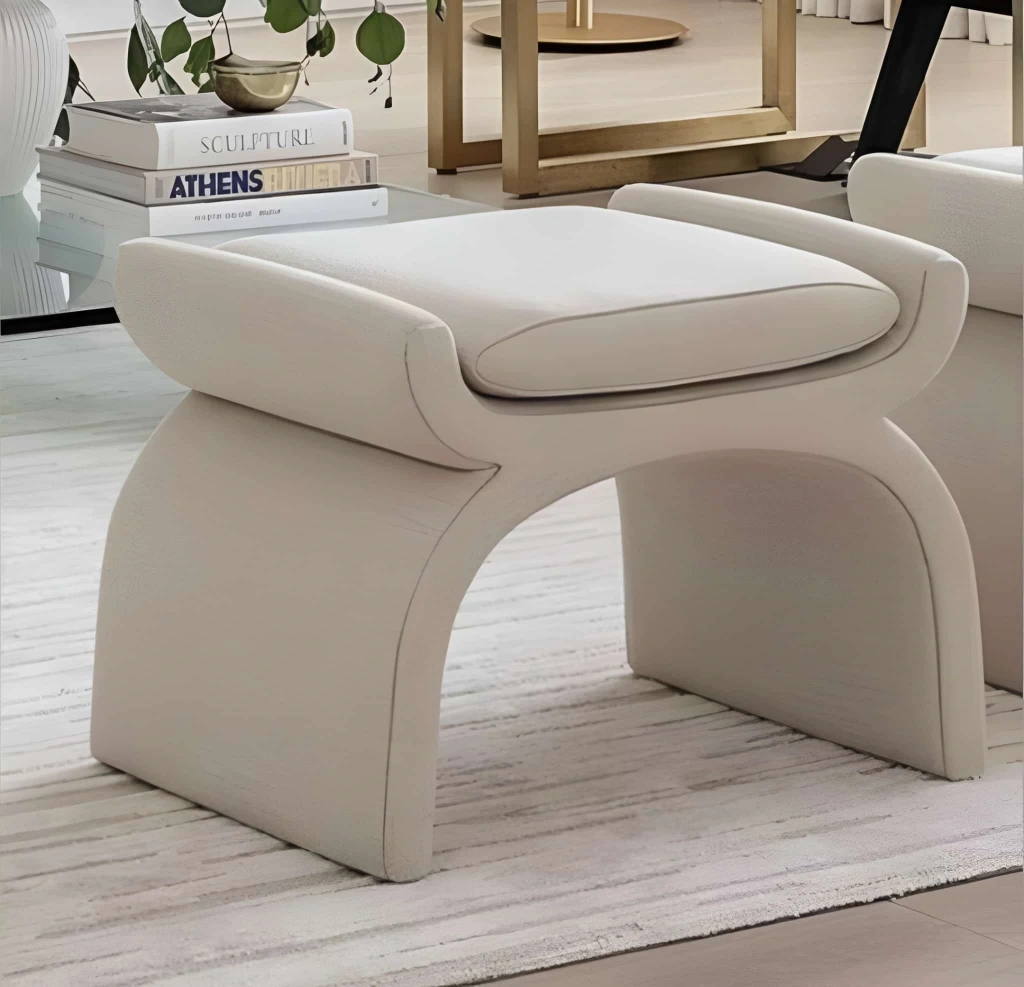 Yaşam alanlarında modern ve sofistike bir atmosfer yaratmak için tasarlanan bu puf, sıradan formların dışına çıkan estetik yapısıyla dikkat çeker. Ters "U" şeklindeki akıcı ve kavisli gövde tasarımı, ürüne sanatsal bir derinlik kazandırır. Üst kısmındaki ekstra dolgulu yumuşak minderi, konforlu bir oturum deneyimi sunar. Salonlarda tamamlayıcı bir parça, yatak odasında makyaj masası pufu veya antrede şık bir karşılama elemanı olarak kullanılabilir. Lüks dokusu ve zarif rengiyle dekorasyonunuzu zenginleştirir.