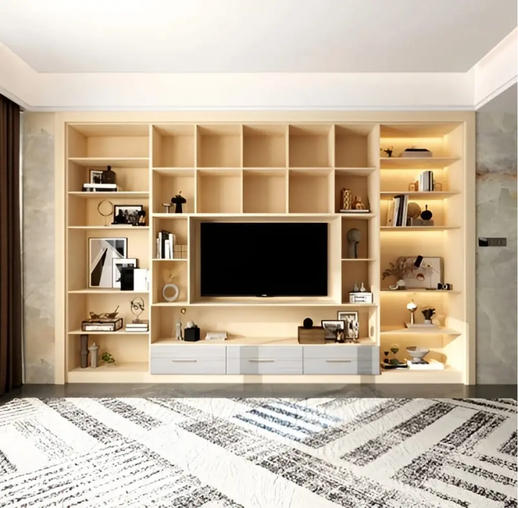 Ortada TV alanı, üst kısmında ek raflar