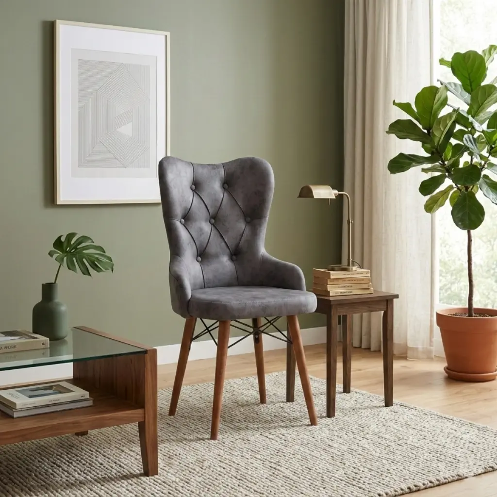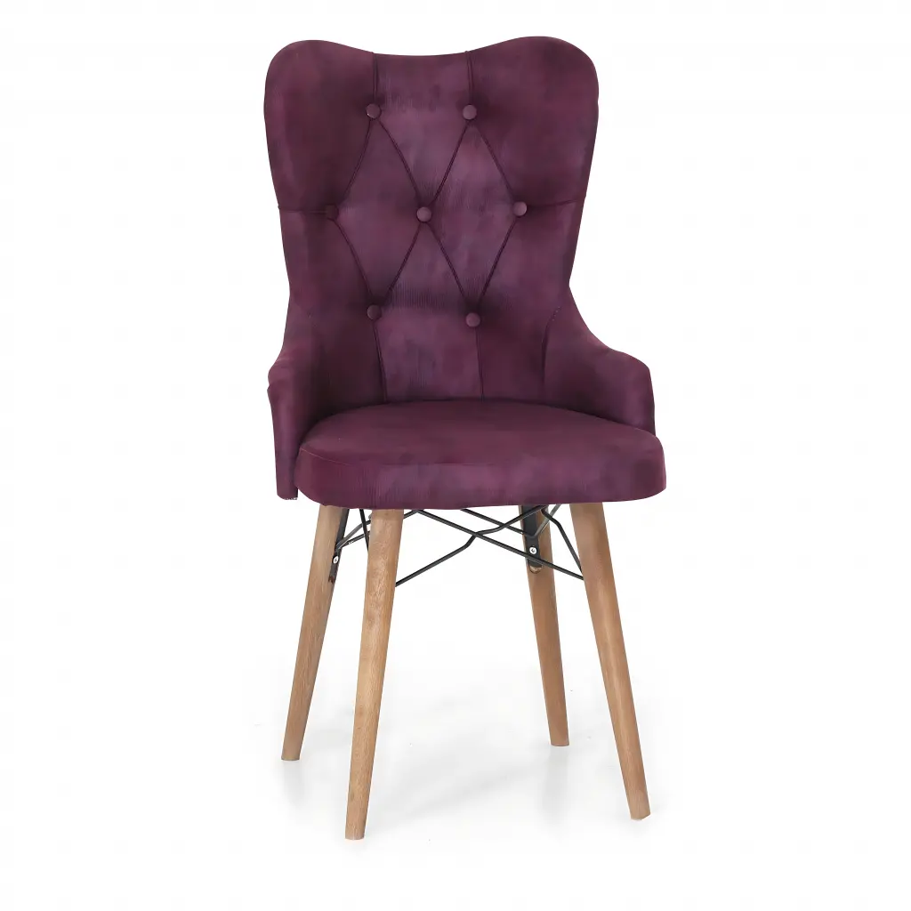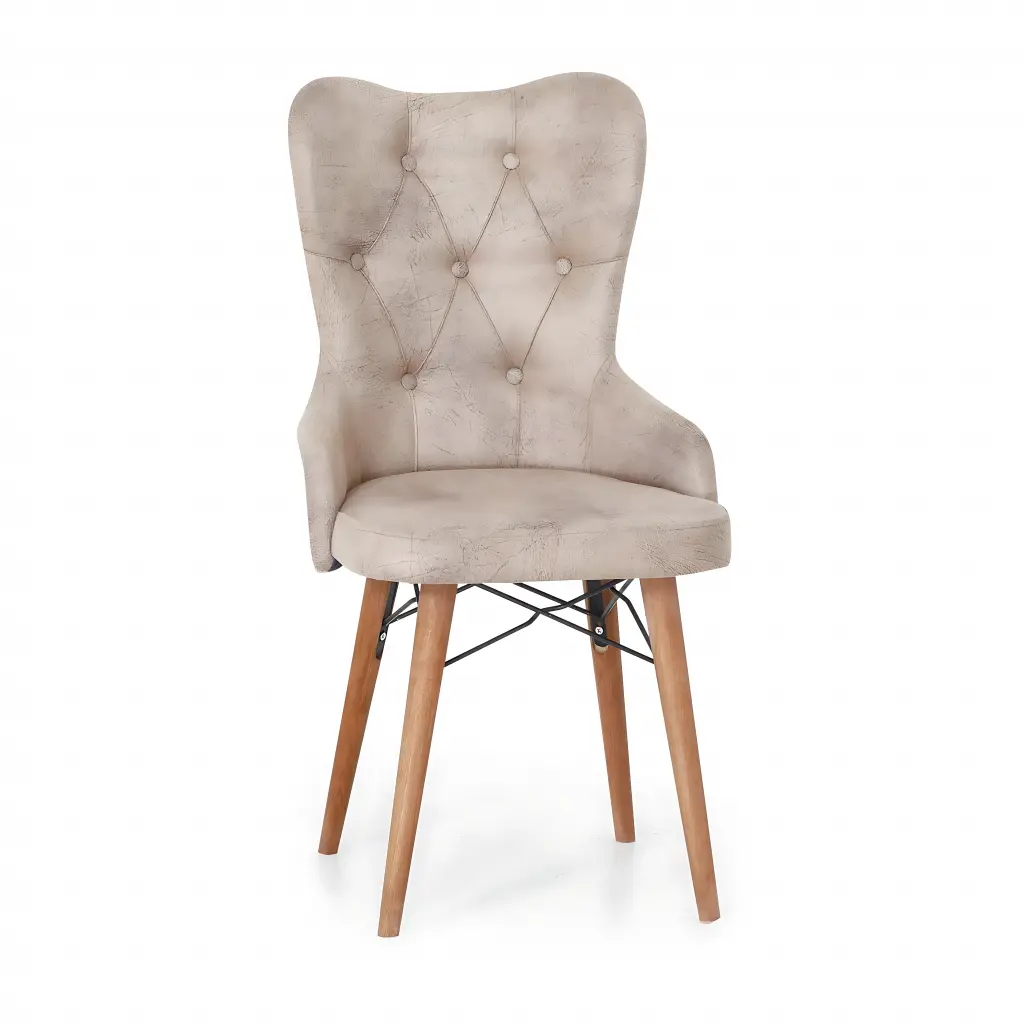 Konfor ve estetiği bir arada sunan bu sandalye, sağlam ahşap ayakları ile doğal bir şıklık katarken, geliştirilmiş yaslanma yeri sayesinde uzun süre oturulduğunda bile rahatlık sağlar. Yemek masası, çalışma alanı veya makyaj masası gibi farklı alanlarda şık bir tamamlayıcıdır.