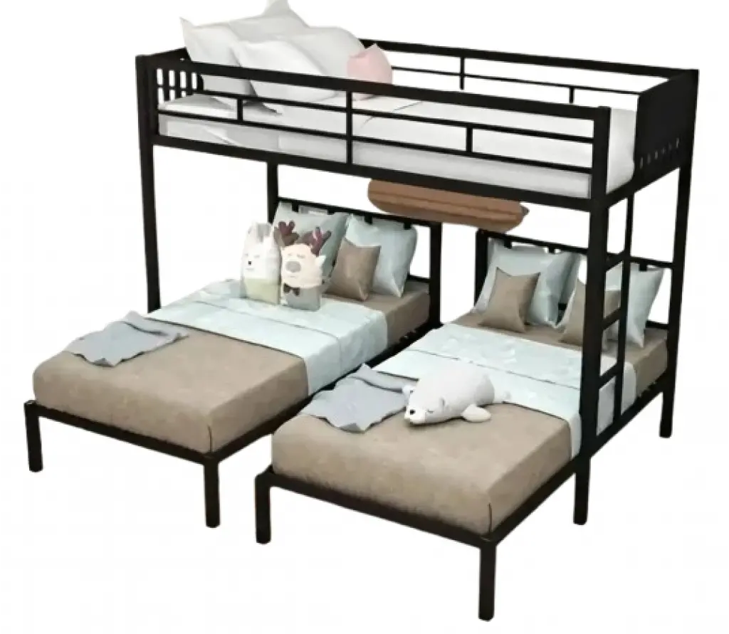 Bu tasarım, "Industrial Graphicism" (Endüstriyel Grafizm) akımının net ve işlevsel bir manifestosudur. Mat siyah metal profillerden oluşan iskelet, mekânda üç boyutlu bir çizim gibi durarak güçlü bir grafik etki yaratır. Üstteki ranzanın rijit yatay hattı, altta L formasyonunda yerleştirilmiş iki bağımsız yatağın dinamik düzeniyle birleşerek "Architectural Flexibility" (Mimari Esneklik) sunar. Bu düzen, sadece üç kişilik bir uyku alanı sağlamakla kalmaz, aynı zamanda zemin seviyesinde açık ve ferah bir akış yaratarak odaya modern, kentsel ve havadar bir karakter kazandırır. Metalin soğuk ve net duruşu, ürüne zamansız bir sağlamlık ve endüstriyel bir şıklık katar.