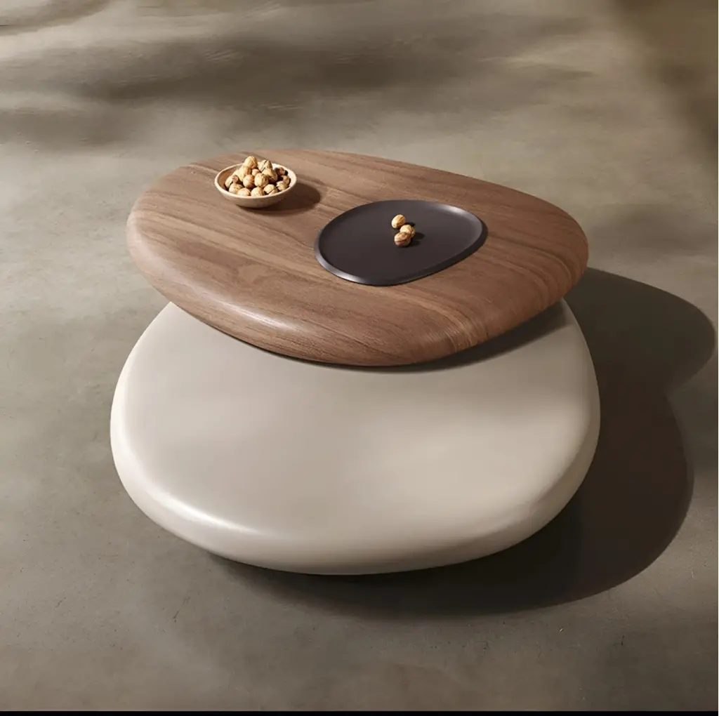 Organik hatları ve modern tasarımıyla öne çıkan bu ikili sehpa, yaşam alanınıza şıklık ve denge kazandırır. İki adet aynı boyuttaki yumurta formundaki sehpa, üst üste veya yan yana kullanılarak dekorasyonda esnek bir yerleşim imkânı sunar. Ayaksız ve yere yakın yapısı, minimal ve dengeli bir görünüm sağlar.