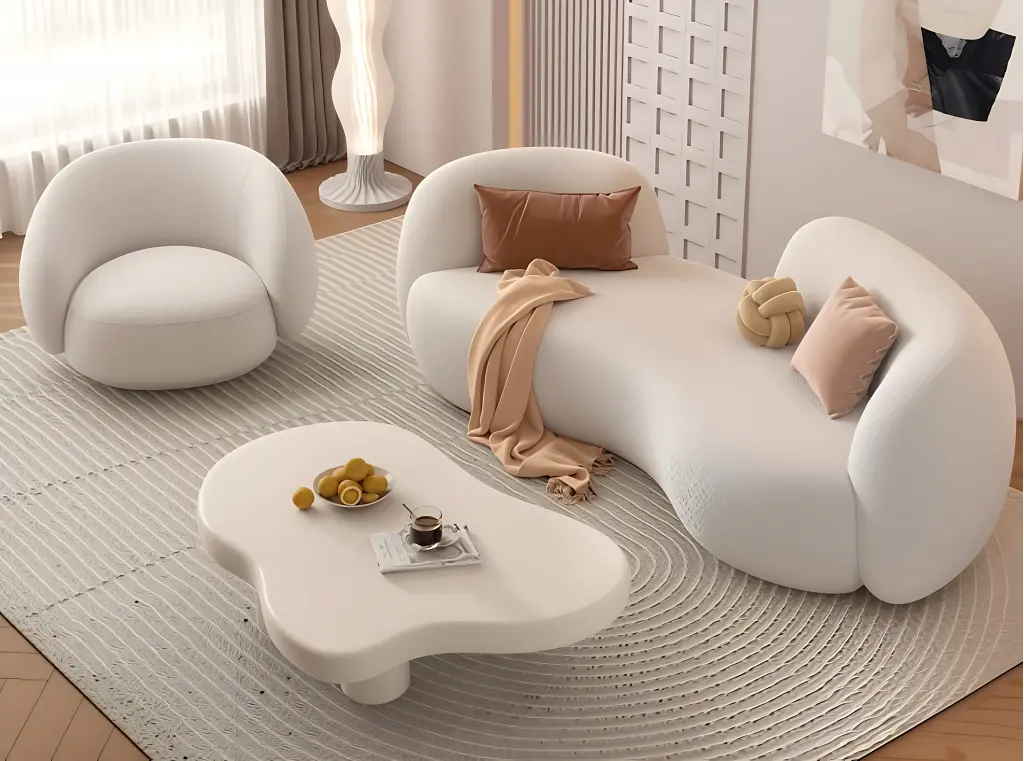 Puf formundaki tekli ve ikili koltuklarla birlikte gelen masa, hem dinlenmek hem de rahatça vakit geçirmek için mükemmel bir uyum sunuyor.