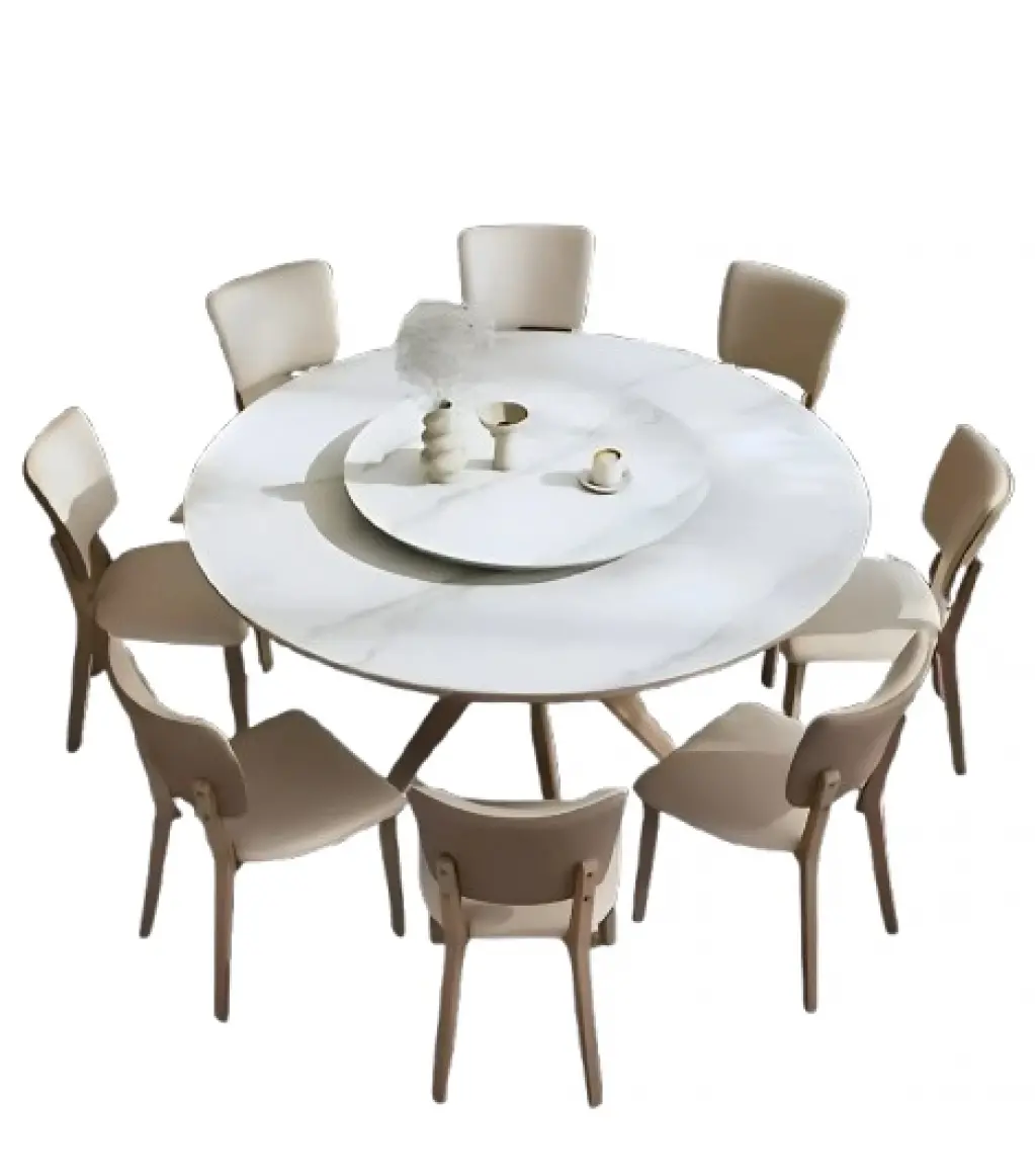 Kalabalık sofralar için özel olarak tasarlanan bu yuvarlak masa, 8 kişilik geniş oturum kapasitesiyle hem şıklığı hem de işlevselliği bir araya getiriyor. Masanın tam ortasında, masa çapının yarısı büyüklüğünde yuvarlak bir basamak tabla yer alıyor. Bu özel tasarım, yemek ve ikramların herkes tarafından kolayca ulaşılabilir olmasını sağlayarak sofralara pratiklik ve estetik katar.