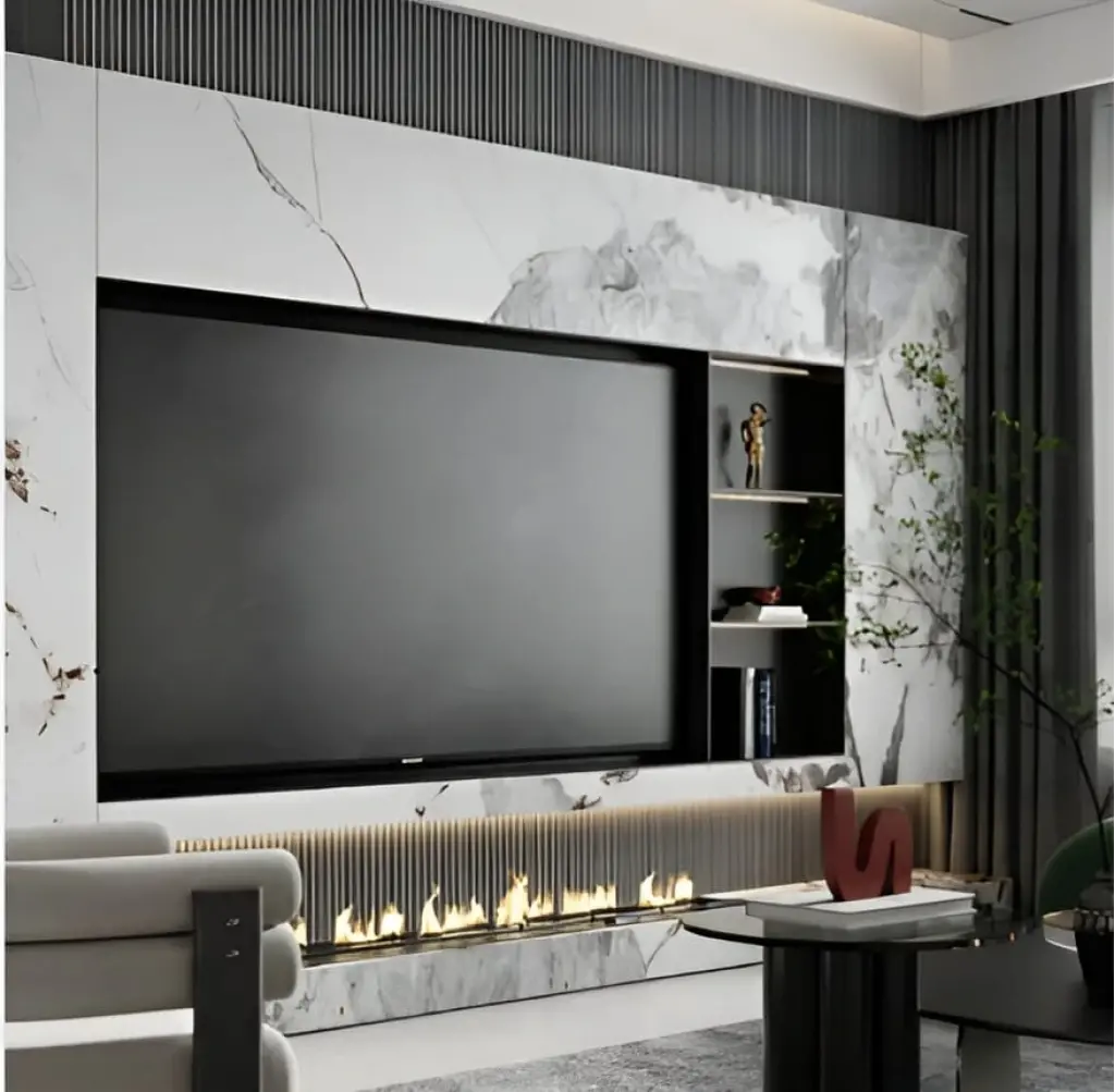 Zarif tasarımı ve fonksiyonelliğiyle öne çıkan bu TV ünitesi, yaşam alanınıza sofistike bir dokunuş katıyor. Ortada televizyon alanı bulunurken, sağ tarafta konumlandırılmış raflar dekoratif objeler, kitaplar ve aksesuarlar için şık bir sergileme imkânı sunuyor. Çevresindeki paneller ve ek raflar, boşluk bırakmadan kompakt bir bütünlük oluşturuyor ve mekanınıza düzenli bir estetik kazandırıyor.