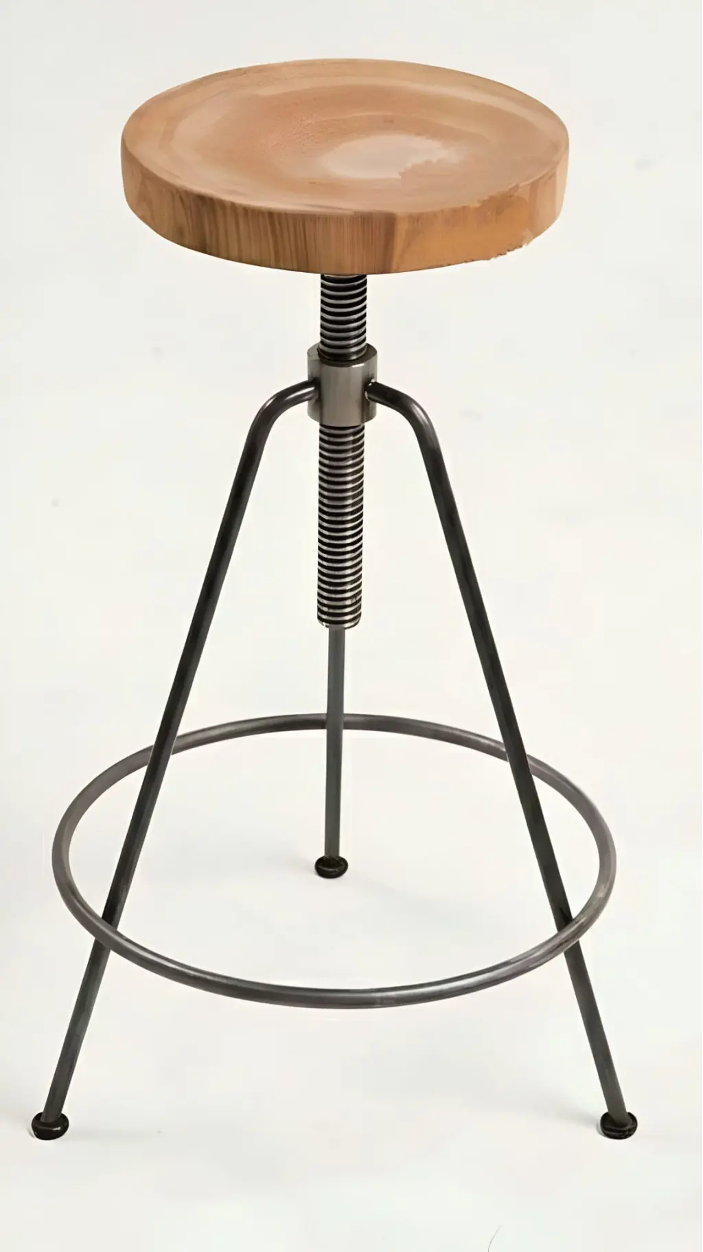 Rustik ve endüstriyel tarzın mükemmel uyumunu yansıtan bu bar taburesi, mekanlarınıza karakter katmak için tasarlandı. Doğal ahşap dokusunun ve sıcaklığının korunduğu kalın oturum alanı, konforlu bir oturuş için hafifçe kavis verilerek (ergonomik oyuklu) şekillendirilmiştir. Döner vidalı metal mekanizması sayesinde taburenin yüksekliği ihtiyaca göre kolayca ayarlanabilir. İnce yapılı sağlam metal ayakları ve ayak dayama çemberi, ürüne hem dayanıklılık kazandırır hem de estetik bir duruş sergiler. Cafe, mutfak adası veya bar alanları için idealdir.