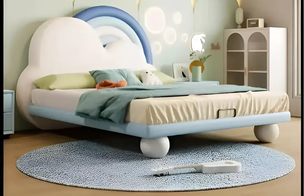 Başlık, açık krem yumuşak kumaşla kaplanmış, modern ve minimalist çizgilerle tasarlanmıştır. Geniş saklama alanı sunan baza, yorgan, battaniye ve diğer eşyalarınızı düzenli tutmanıza yardımcı olur. Beyaz bombeli ayaklar, temizlik kolaylığı sağlar ve şık bir görünüm sunar.
