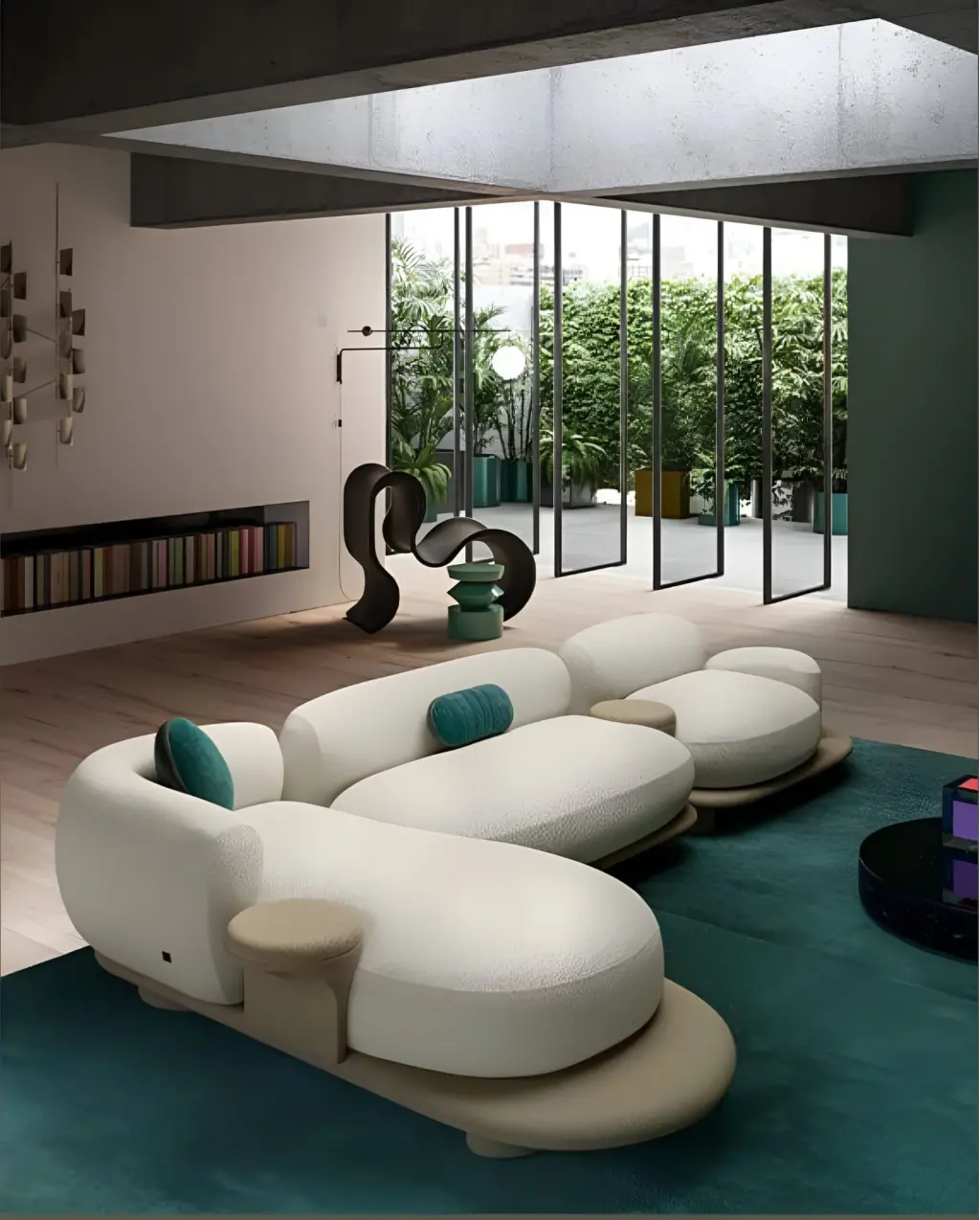 Organic Shapes: Keskin köşelerin yerini alan yuvarlatılmış hatlar ve "fasulye" formundaki modüllerle sağlanan akışkanlık.