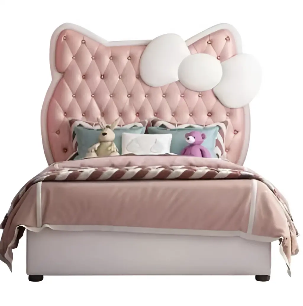 Zeminle uyumlu beyaz bombeli ayaklar, hem temizlik kolaylığı sağlar hem de baza yapısına şık bir detay kazandırır. Açık krem tonlarındaki döşeme kumaşı, farklı renklerdeki oda dekorasyonlarıyla rahatlıkla uyum sağlar.