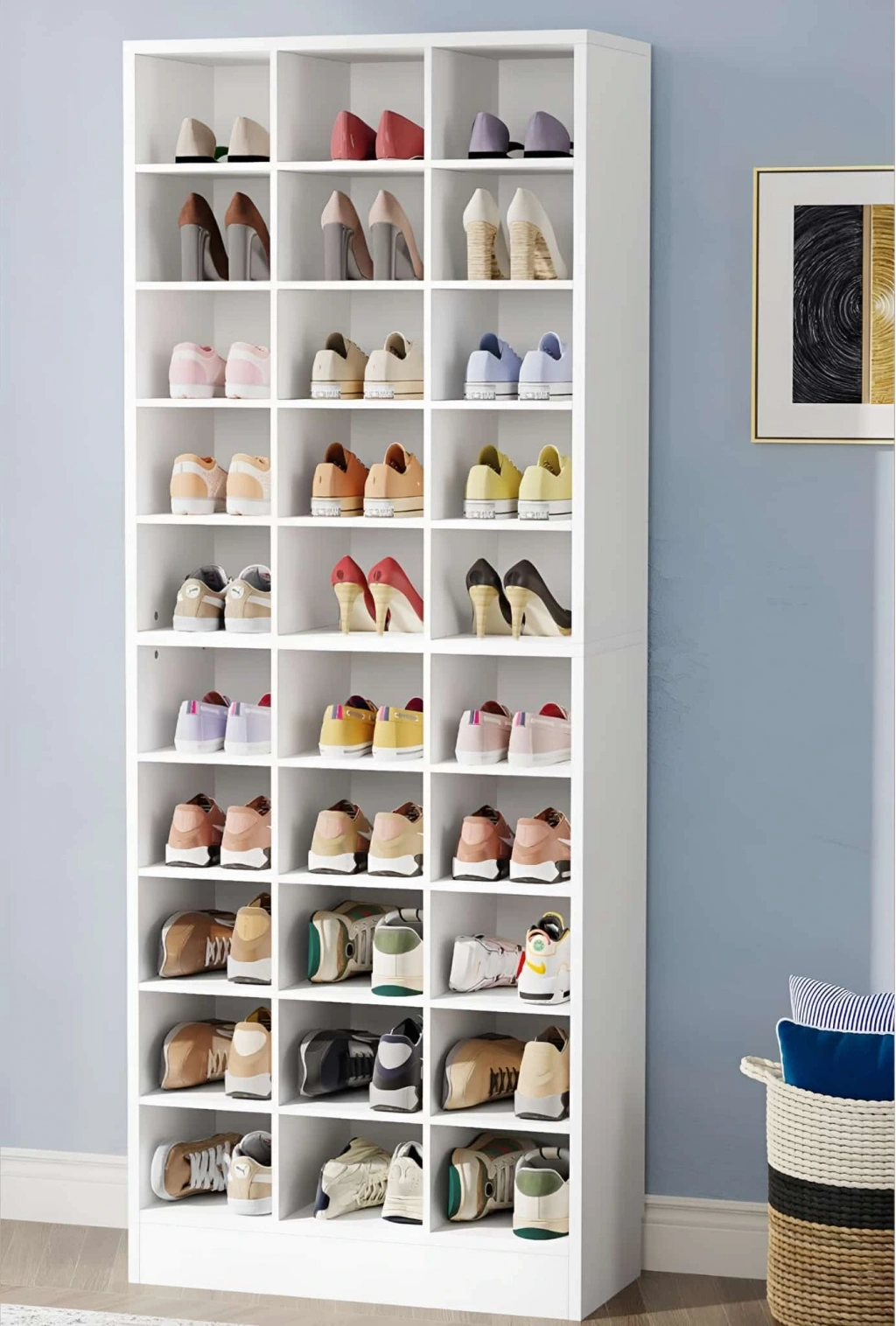 Ayakkabı tutkunları ve koleksiyoncular için ideal olan bu dolap, mağaza düzenini ve şıklığını evinize getirir. Açık raf sistemi ve simetrik küp bölmeleri sayesinde tüm ayakkabılarınızı bir bakışta görebilir, aradığınızı kolayca bulabilirsiniz. Dikey tasarımı ile zeminde az yer kaplarken, tavana kadar uzanan yapısıyla maksimum depolama alanı sunar. Giyinme odalarında, yatak odasında veya geniş antrelerde hem düzenleyici hem de dekoratif bir sergileme ünitesi olarak kullanılabilir.
