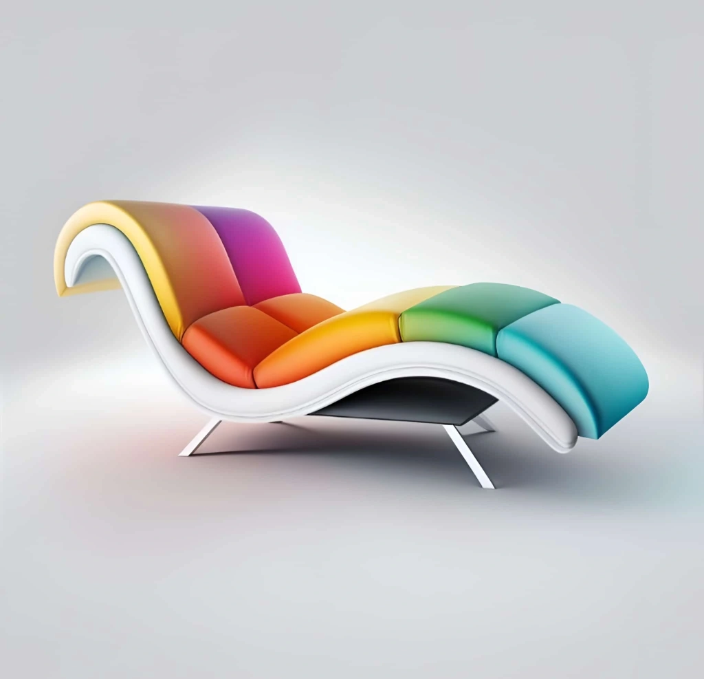 Vücudun doğal kıvrımlarına tam uyum sağlayan bu "S" formlu şezlong (chaise lounge), dinlenmeyi bir sanata dönüştürüyor. Sarıdan maviye uzanan canlı renk blokları, beyazın modern çerçevesiyle buluşarak mekana pop-art bir hava ve pozitif enerji katıyor. Kitap okumak, müzik dinlemek veya sadece günün yorgunluğunu atmak için ideal olan bu tasarım, omurganızı destekleyen kavisli yapısıyla hem fiziksel bir rahatlama hem de görsel bir şölen sunar.