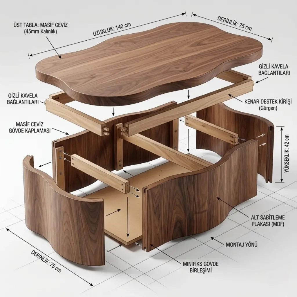 Yükseklik: 30 – 35 cm (Yere yakın, modern profil)