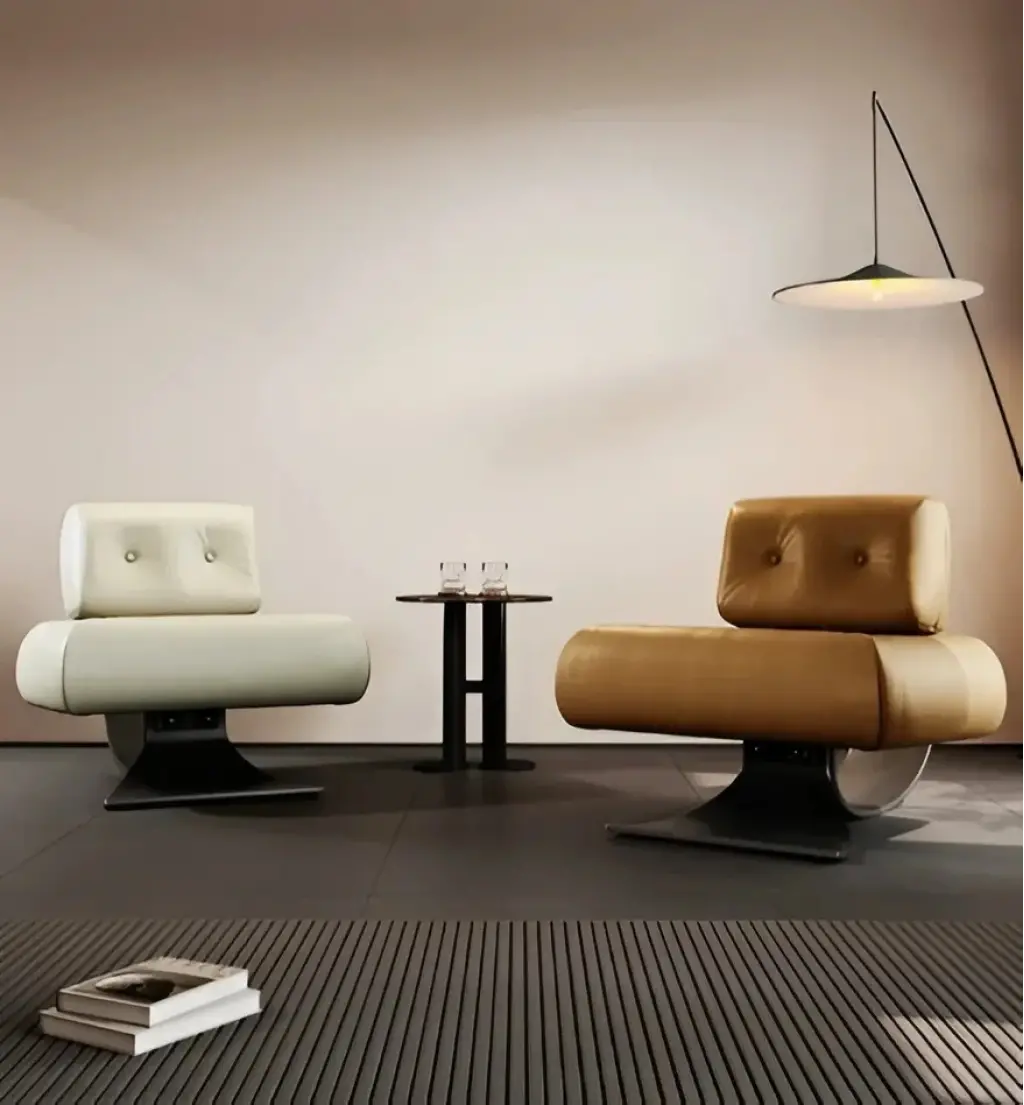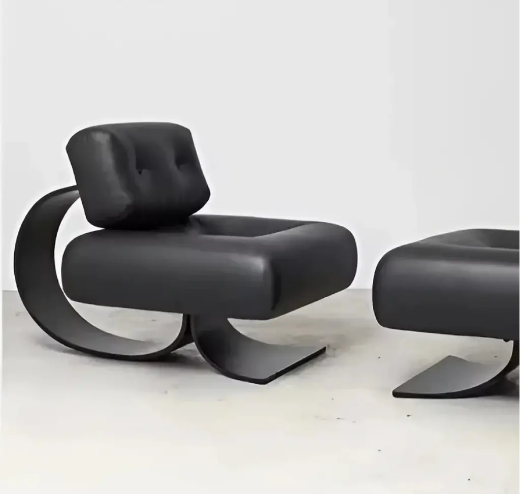 Geleneksel dört ayaklı koltuk anlayışını reddeden bu form, 1970'lerin "Space Age" (Uzay Çağı) estetiğini, modern lüksle buluşturuyor. Siyah derinin asilliği, mat siyah tabanla birleşerek tek renkli (monokrom) ama derinlikli bir görsel şölen sunuyor. Hem bir dinlenme koltuğu hem de bir sanat eseri.