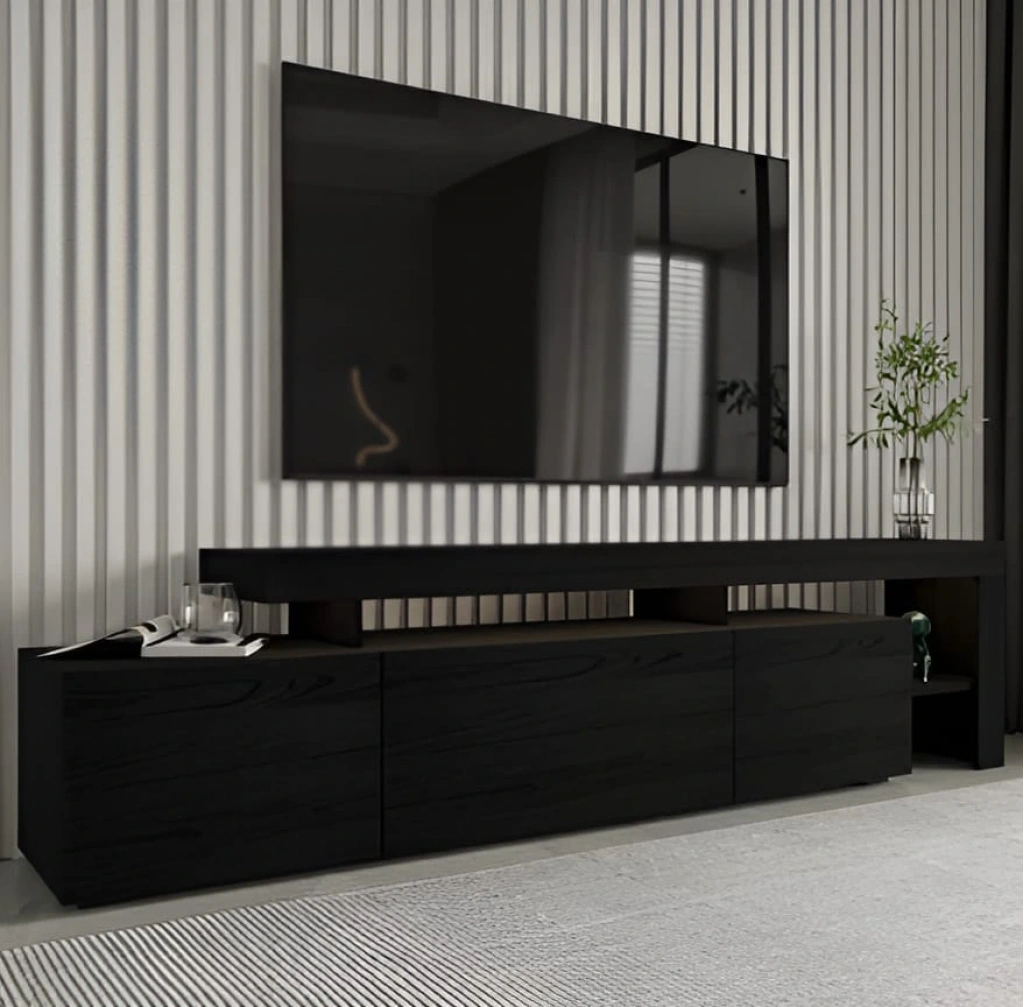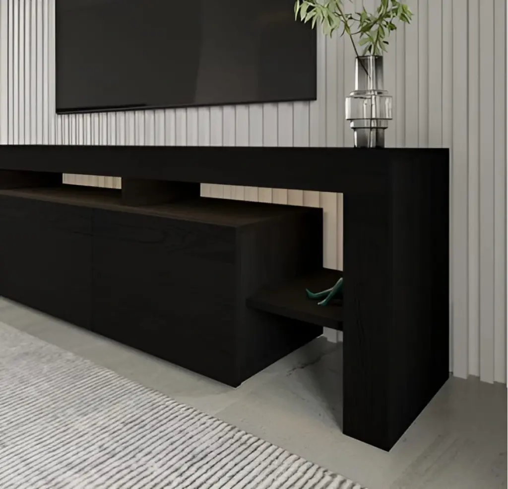 Televizyon keyfinize zarafet katan bu ünite, modern ve asil görünümüyle dikkat çekiyor. İki katlı bir yapıya sahip olan ünitenin alt kısmı geniş depolama alanı sunarken, üst katı ince ve zarif formuyla dekoratif bir bütünlük sağlıyor. Üst katın alana yakın ve ince tasarımı, hem minimalist bir hava katıyor hem de şıklığı ön plana çıkarıyor.