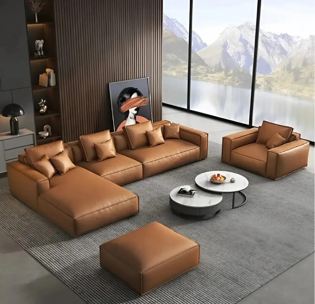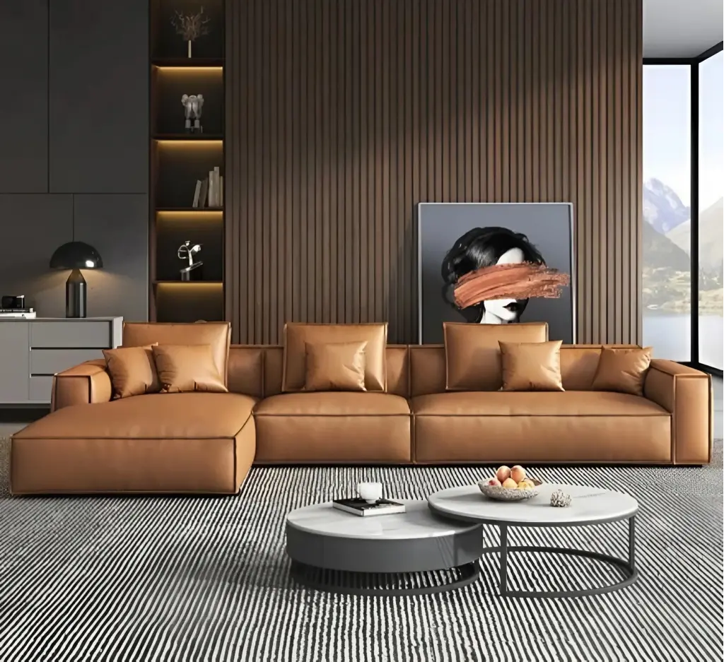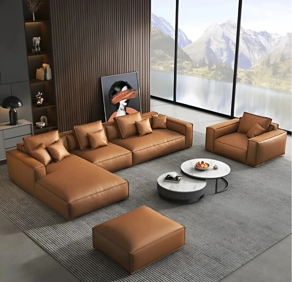 Parça parça mobilya uydurma derdini bitiren bu tasarım; L köşe modülünün kuşatıcılığını, bağımsız berjerin kişisel konforunu ve geniş pufun çok yönlülüğünü aynı lüks dilde buluşturur. Taba renginin sıcaklığını ve "yere yakın" (low-profile) mimari duruşu, salonunuza modern bir malikane havası katar. Geniş kolçaklar ve derin oturumlar, sadece misafirlerinizi değil, günün yorgunluğunu da şımartmak için tasarlandı. Modern, maskülen ve tavizsiz bir stil arayanlar için tek başına bir dekorasyon çözümü.